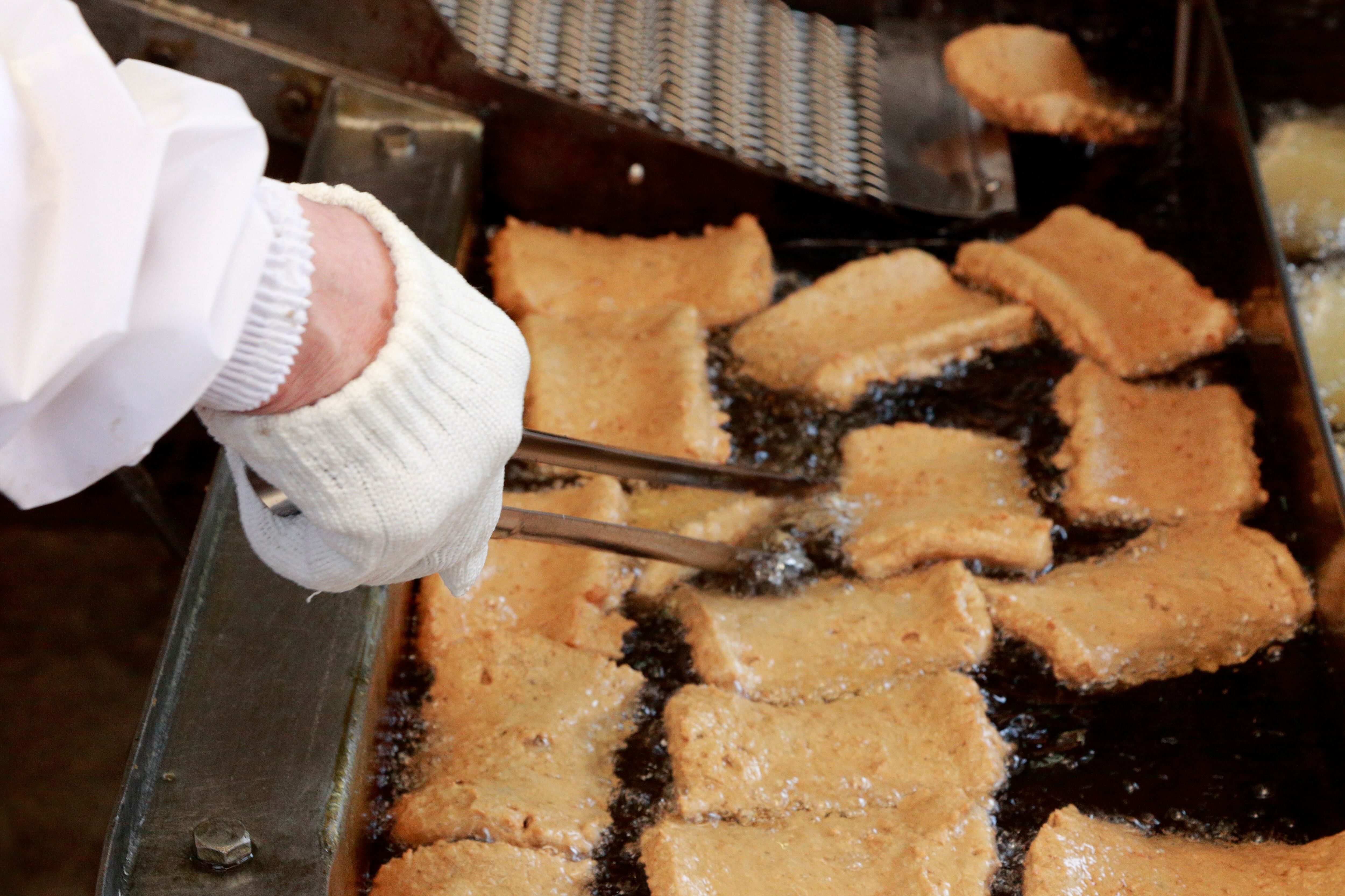 昔ながらの職人の技で一枚一枚丁寧に手揚げしたじゃこ天。
